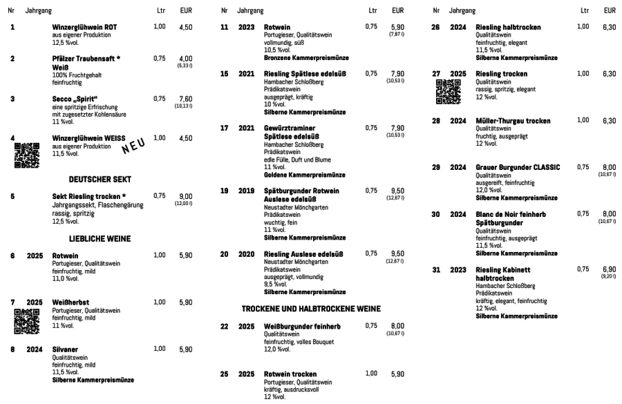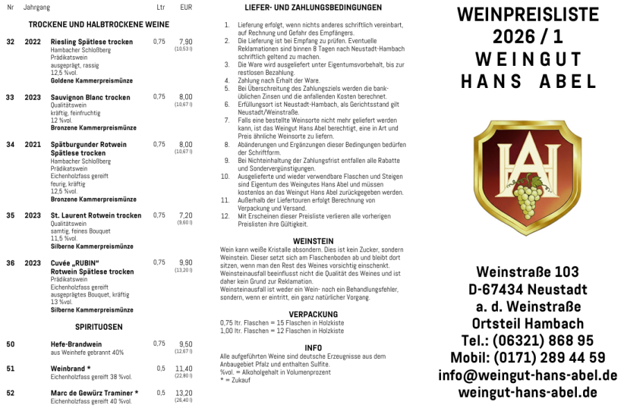Unser vollständiges Sortiment entnehmen Sie bitte der aktuellen Weinpreisliste.