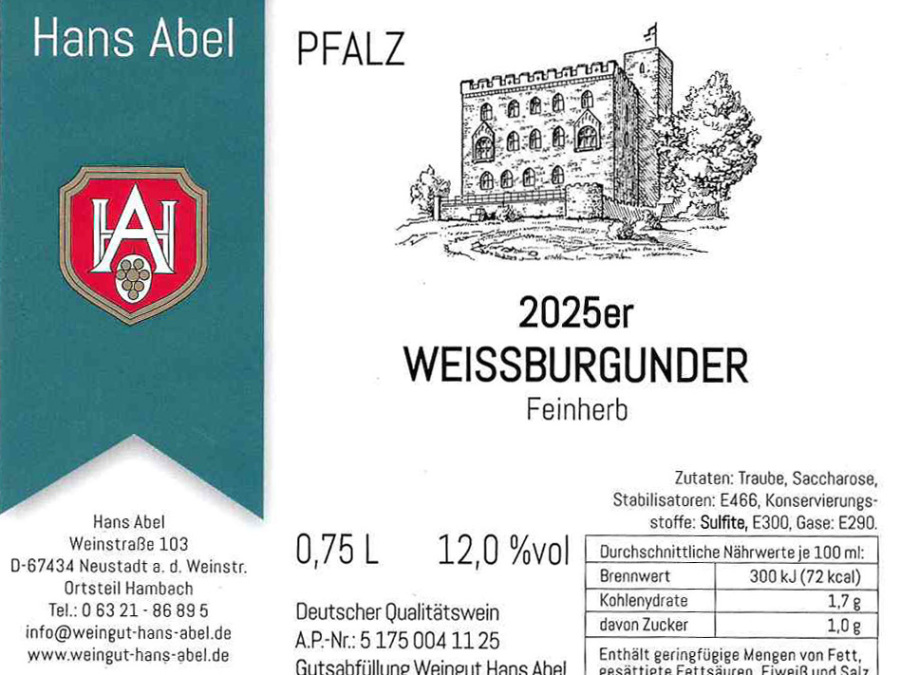 Der Weißburgunder des Jahrgangs 2025 begeistert mit einer feinfruchtigen Art und einem vollen, ausdrucksstarken Bouquet. Zarte Aromen von reifen Birnen, gelbem Apfel und einem Hauch von Zitrusfrüchten prägen das harmonische Duftspiel.